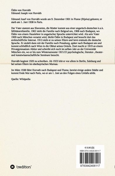 Ödön von Horváth, geb. am 9.12.1901 in Fiume (Rijeka), begann 1920 zu schreiben. Sein erfolgreichstes Bühnenstück, Geschichten aus dem Wiener Wald, wurde 1931 uraufgeführt. Im Anschluss reiste er nach Paris, wo er 1938 auf der Champs-Élysées von einem Ast erschlagen wurde.