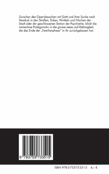 Zwischen den Opernbesuchen mit Gottt und ihrer Suche nach Hendryk in den Straßen, Ecken, Winkeln und Nischen der Stadt oder der geschlossenen Station der Psychiatrie, blickt die namenlose Protagonistin in die grosse Leere und Ratlosigkeit, die das Ende der >Familienphase< in ihr zurückgelassen hat.