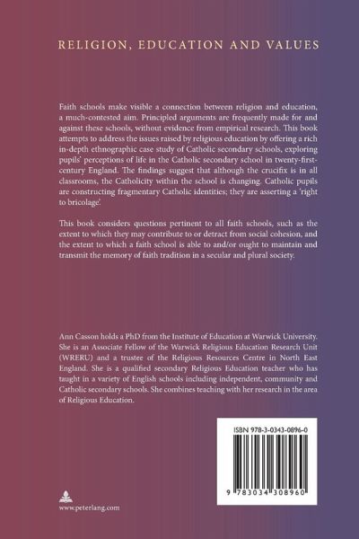 Faith schools make visible a connection between religion and education, a much-contested aim. Principled arguments are frequently made for and against these schools, without evidence from empirical research. This book attempts to address the issues raised by religious education by offering a rich in-depth ethnographic case study of Catholic secondary schools, exploring pupils' perceptions of life in the Catholic secondary school in twenty-first-century England. The findings suggest that although the crucifix is in all classrooms, the Catholicity within the school is changing. Catholic pupils are constructing fragmentary Catholic identities; they are asserting a 'right to bricolage'.