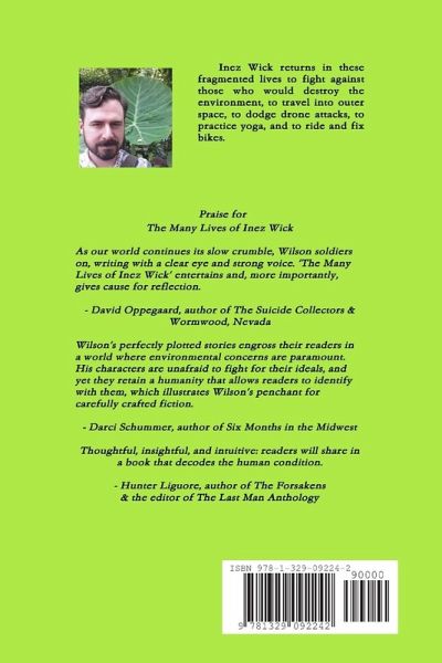 Inez Wick returns in these fragmented lives to fight against those who would destroy the environment, to travel into outer space, to dodge drone attacks, to practice yoga, and to ride and fix bikes.