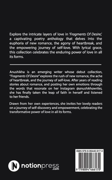Explore the intricate layers of love in 'Fragments Of Desire, ' a captivating poetry anthology that delves into the euphoria of new romance, the agony of heartbreak, and the empowering journey of self-love. With lyrical grace, this collection celebrates the enduring power of love in all its forms.