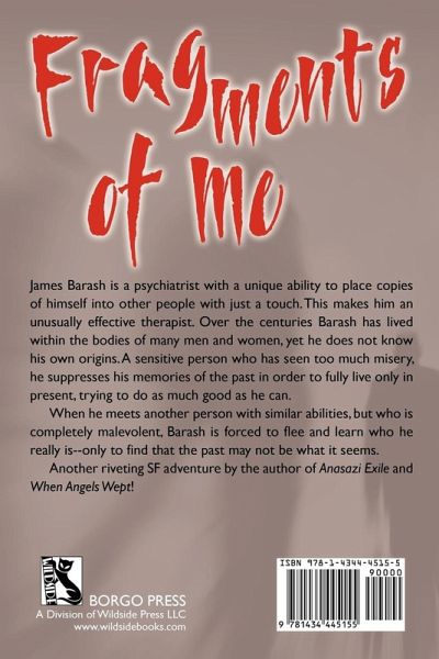 James Barash is a psychiatrist with a unique ability to place copies of himself into other people with just a touch. This makes him an unusually effective therapist. Over the centuries Barash has lived within the bodies of many men and women, yet he does not know his own origins. A sensitive person who has seen too much misery, he suppresses his memories of the past in order to fully live only in present, trying to do as much good as he can. When he meets another person with similar abilities, but who is completely malevolent, Barash is forced to flee and learn who he really is--only to find that the past may not be what it seems. Another riveting SF adventure by the author of Anasazi Exile and When Angels Wept!