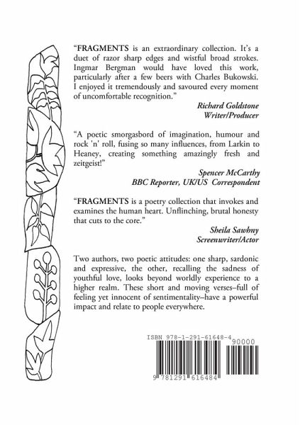 Poems by two authors, one an ex-pat American and an Englishman, in two different styles, are a pungent commentary on love, hate, frustration and death - but with intimations of hope where the angels reside and in which the human soul returns. These short and moving verses are illuminated by insight and sharp sardonic humour.