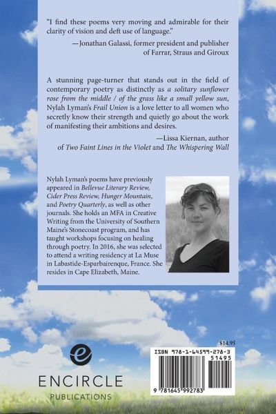 A stunning page-turner that stands out in the field of contemporary poetry as distinctly as a solitary sunflower rose from the middle / of the grass like a small yellow sun, Nylah Lyman's Frail Union is a love letter to all women who secretly know their strength and quietly go about the work of manifesting their ambitions and desires. -Lissa Kiernan, author of Two Faint Lines in the Violet and The Whispering Wall