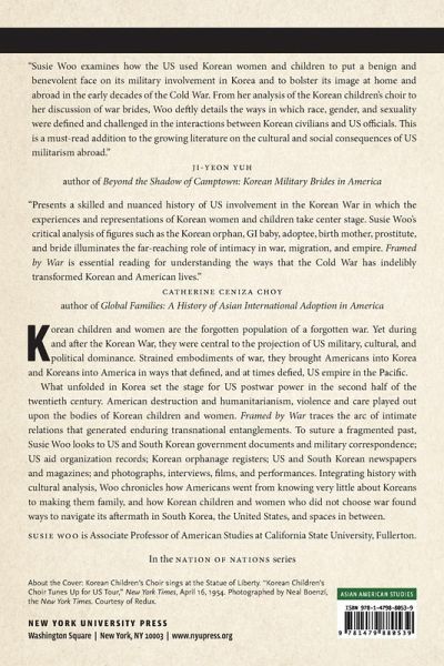 An intimate portrait of the postwar lives of Korean children and women Korean children and women are the forgotten population of a forgotten war. Yet during and after the Korean War, they were central to the projection of US military, cultural, and political dominance. Framed by War examines how the Korean orphan, GI baby, adoptee, birth mother, prostitute, and bride emerged at the heart of empire. Strained embodiments of war, they brought Americans into Korea and Koreans into America in ways that defined, and at times defied, US empire in the Pacific. What unfolded in Korea set the stage for US postwar power in the second half of the twentieth century and into the twenty-first. American destruction and humanitarianism, violence and care played out upon the bodies of Korean children and women. Framed by War traces the arc of intimate relations that served as these foundations. To suture a fragmented past, Susie Woo looks to US and South Korean government documents and military correspondence; US aid organization records; Korean orphanage registers; US and South Korean newspapers and magazines; and photographs, interviews, films, and performances. Integrating history with visual and cultural analysis, Woo chronicles how Americans went from knowing very little about Koreans to making them family, and how Korean children and women who did not choose war found ways to navigate its aftermath in South Korea, the United States, and spaces in between.
