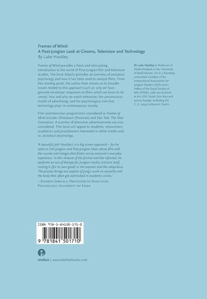 The eminent psychologist Carl Jung is best known for such indelible contributions to modern thought as the concept of the collective unconscious, but his wide-spread work can also be fruitfully employed to analyze popular culture. Frames of Mind offers an introduction to the world of Post-Jungian film and television studies, examining how Jung's theories can heighten our understanding of everything from Chinatown and Star Trek to advertisements. In this illuminating psychoanalysis of our media environment, Luke Hockley probes questions such as why we have genuine emotional responses to film events we know to be fictional, why we are compulsively driven to watch television, and how advertisers use unconscious motifs to persuade viewers. "A beautiful job! Hockley's is a big screen approach, for he seeks to link Jungian and post-Jungian ideas about film with the sounds and images that flicker across everyone's everyday experience. In this mixture of the formal and the informal, he performs an act of therapy for Jungian media criticism itself, rooting it (for its own good) in the popular and the ubiquitous. The process brings out aspects of Jung's work on sexuality and the body that often get overlooked in academic circles."-Andrew Samuels, Professor of Analytical Psychology, University of Essex