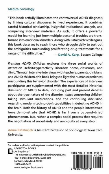 An in depth study of how adults and children negotiate the meaning of ADHD within the contexts of the home, school, and clinic. Adam Rafalovich's book provides historical perspectives of ADHD alongside the everyday accounts of ADHD from parents, teachers, clinicians, and ADHD children.