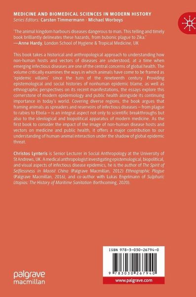 This book takes a historical and anthropological approach to understanding how non-human hosts and vectors of diseases are understood, at a time when emerging infectious diseases are one of the central concerns of global health. The volume critically examines the ways in which animals have come to be framed as 'epidemic villains' since the turn of the nineteenth century. Providing epistemological and social histories of non-human epidemic blame, as well as ethnographic perspectives on its recent manifestations, the essays explore this cornerstone of modern epidemiology and public health alongside its continuing importance in today's world. Covering diverse regions, the book argues that framing animals as spreaders and reservoirs of infectious diseases - from plague to rabies to Ebola - is an integral aspect not only to scientific breakthroughs but also to the ideological and biopolitical apparatus of modern medicine. As the first book to consider the impact of the image of non-humandisease hosts and vectors on medicine and public health, it offers a major contribution to our understanding of human-animal interaction under the shadow of global epidemic threat.