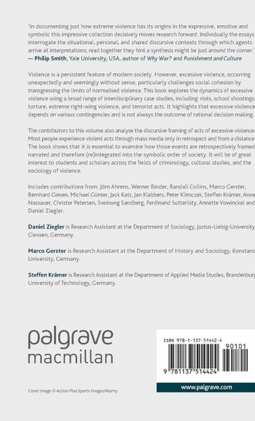 1. Introduction; Marco Gerster, Steffen Krämer and Daniel Ziegler PART I. DYNAMICS OF EXCESS 2. Emotional Dynamics of Violent Situations; Randall Collins 3. Forward Panic and Police Riots; Anne Nassauer 4. What the Situation Explains: On Riotous Violence; Ferdinand Sutterlüty 5. Violence and Emotion; Bernhard Giesen 6. Neo-Fascist Heroes: Group Identity and Idealisation of the Aggressor in Violent Right-wing Adolescents; Michael Günter 7. Intimate Massacres: Next Steps Toward a Causal Explanation; Jack Katz PART II. DISCOURSE AND IMAGINATION 8. German Rampage: Social Discourse and the Emergence of a Disturbing Phenomenon; Jörn Ahrens 9. Amok - Framing Discourses on Political Violence by Means of Symbolic Logic; Peter Klimczak and Christer Petersen 10. Terrorism as Cultural Bricolage - The Case of Anders Behring Breivik; Sveinung Sandberg 11. Tales of Abuse and Torture. The Narrative Framing of the Abu Ghraib Photographs; Werner Binder 12. The (Relative) Absence of Torture in Documentary Photography; Annette Vowinckel 13. Off Limits? International Law and the Excessive Use of Force; Jan Klabbers