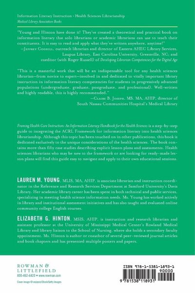 Acknowledgements Preface Chapter 1: Bibliographic instruction and accreditation in the health sciences Chapter 2: Authority in the health sciences Chapter 3: Information creation in the health sciences Chapter 4: Value in the health sciences Chapter 5: Inquiry in the health sciences Chapter 6: Conversation in the health sciences Chapter 7: Strategic exploration in the health sciences About the Editors