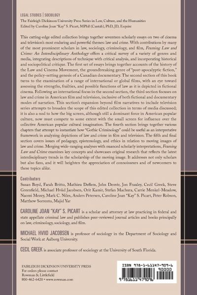This cutting-edge edited collection brings together 17 scholarly essays on two of cinema and television's most enduring and powerful themes: law and crime. With contributions by many of the most prominent scholars in law, sociology, criminology, and film, Framing Law and Crime offers a critical survey of a variety of genres and media, integrating descriptions of technique with critical analysis, and incorporating historical and socio-political critique. The first set of essays brings together accounts of the history of the Law and Cinema Movement; the groundbreaking genre of "post-apocalyptic fiction;" and the policy-setting genesis of a Canadian documentary. The second section of the book turns to the examination of a range of international or global films, with an eye to assessing the strengths, frailties, and possible functions of law, as depicted in fictional cinema. After an international focus in the second section, the third section focuses on law and crime in American film and television, inclusive of both fictional and documentary modes of narration. This section's expansion beyond film narratives to include television series attempts to broaden the scope of the edited collection, in terms of media discussed; it is also a nod to how the big screen, although still a dominant force in American popular culture, now has to compete, to some extent, with the small screen, for influence over the collective American popular cultural imaginary. The fourth section, titled brings together various chapters that attempt to instantiate how a "Gothic Criminology" could be useful, as an interpretative framework in analyzing depictions of law and crime in film and television. The fifth and final section covers issues of pedagogy, epistemology, and ethics in relation to moving images of law and crime. Merging wide-ranging analyses with nuanced scholarly interpretations, Framing Law and Crime examines key concepts and showcases original research reflecting the latest interdisciplinary trends in the scholarship of the moving image. It addresses, not only scholars, but also fans, and will heighten the appreciation of connoisseurs and newcomers to these topics alike.