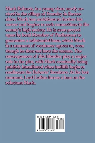 Mark Robarts, is a young vicar, newly arrived in the village of Framley in Barsetshire. Mark has ambitions to further his career and begins to seek connections in the county's high society. He is soon preyed upon by local Member of Parliament to guarantee a substantial loan, which Mark in a moment of weakness agrees to, even though he does not have the means. The consequences of this blunder play a major role in the plot, with Mark eventually being publicly humiliated when bailiffs begin to confiscate the Robarts' furniture. At the last moment, Lord Lufton forces a loan on the reluctant Mark.