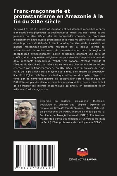 Ce travail est basé sur des observations et des données recueillies à partir d'analyses bibliographiques et documentaires, telles que des revues et des journaux du XIXe siècle, afin de comprendre comment le processus d'éloignement entre l'Église protestante et la franc-maçonnerie s'est déroulé dans la province de Grão-Pará, étant donné qu'au XIXe siècle, il existait une alliance maçonnique-protestante renforcée par la logique libérale qui subventionnait le renforcement du protestantisme dans la région et décapitalisait symboliquement l'Église catholique, générant une série de conflits, dont la question religieuse responsable de l'emprisonnement de deux importants dirigeants du catholicisme national, l'évêque d'Olinda et l'évêque de Grão-Pará ; le thème de ce livre est directement lié au succès rencontré par la franc-maçonnerie au XIXe siècle dans la province de Grão-Pará, qui a pu aider l'ordre maçonnique à mettre en oeuvre sa proposition libérale. L'Église catholique, en tant que détentrice du capital religieux, a tenté par de nombreux moyens de décapitaliser l'ordre maçonnique, en l'affaiblissant par des discours dans les journaux et les revues, dans le but de discréditer les intérêts maçonniques au Brésil, en diabolisant et en avilissant l'ordre maçonnique.
