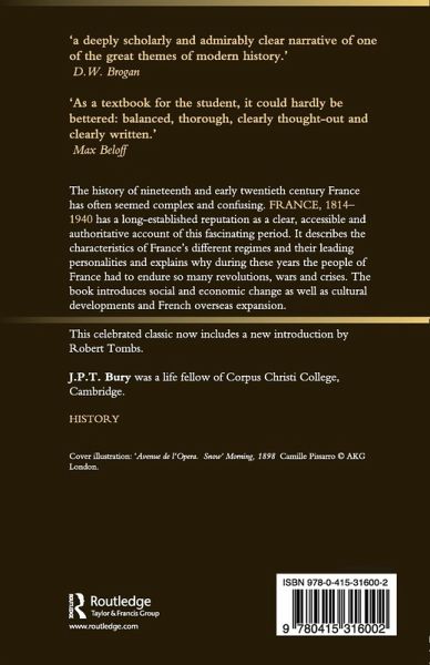 The history of nineteenth and early twentieth-century France has often seemed complex and confusing. France, 1814-1940 has a long-established reputation as a clear, accessible and authoritative account of this fascinating period.