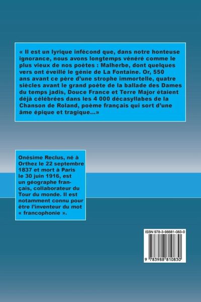 Il est un lyrique infécond que, dans notre honteuse ignorance, nous avons longtemps vénéré comme le plus vieux de nos poètes : Malherbe, dont quelques vers ont éveillé le génie de La Fontaine. Or, 550 ans avant ce père d'une strophe immortelle, quatre siècles avant le grand poète de la ballade des Dames du temps jadis, Douce France et Terre Major étaient déjà célébrées dans les 4 000 décasyllabes de la Chanson de Roland, poème français qui sort d'une âme épique et tragique...