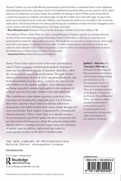 This book explores some of the ways which Tustin's work has enabled psychoanalytic clinicians to enter into the elemental domain of sensation: what Bion called the 'proto-mental' area of the psyche-soma.