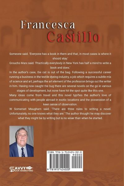 Francesca Castillo tells the story of Kevin Devine, an ex-Army major suffering from PTSD and grieving for the loss of his wife. In an attempt to pull himself out of the dark place he's become stuck in, he journeys to Spain to stay in an idyllic rural hotel, Casa Del Castillo. Here he encounters the beautiful and mysterious Francesca Castillo, a meeting that will change his entire life. But in a place - and a world - where nothing is as it seems, how does Kevin know who he can trust? A thrilling tale played out in various exotic locations all over Europe and Africa, Francesca Castillo is full of adventure, mystery, and intrigue, and its ever-twisting plot will keep you guessing right up to the end.
