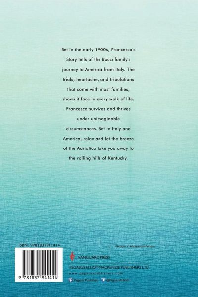 Set in the early 1900s, Francesca's Story tells of the Bucci family's journey to America from Italy. The trials, heartache, and tribulations that come with most families, shows it face in every walk of life. Francesca survives and thrives under unimaginable circumstances. Set in Italy and America, relax and let the breeze of the Adriatico take you away to the rolling hills of Kentucky.