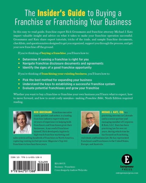 The Insider's Guide to Buying a Franchise or Franchising Your Business In this easy-to-read guide, franchise expert Rick Grossmann and franchise attorney Michael J. Katz impart decades-worth of insight and advice on what it takes to make your franchise operation successful.