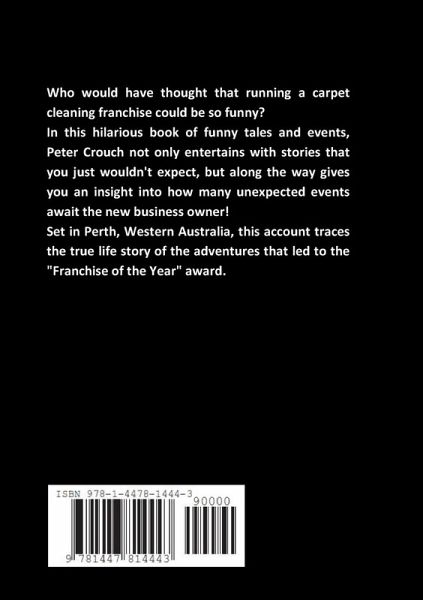 Who would have thought that running a carpet cleaning franchise could be so funny? In this hilarious book of funny tales and events, Peter Crouch not only entertains with stories that you just wouldn't expect, but along the way gives you an insight into how many unexpected events await the new business owner! Set in Perth, Western Australia, this account traces the true life story of the adventures that led to the "Franchise of the Year" award.