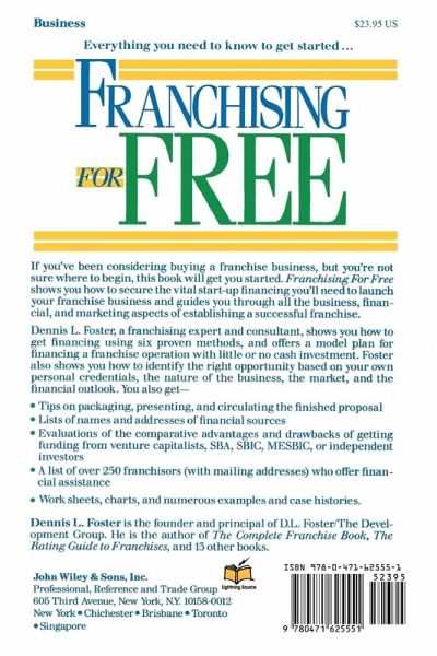 If you've been considering buying a franchise business, franchising expert and consultant Dennis L. Foster gets you started and guides you through all the business, financial, and marketing aspects of establishing a successful franchise, including six proven methods for obtaining financing. The book contains work sheets, charts, and numerous examples and case histories.