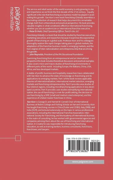Franchising Globally is first of its kind to examine franchising both from an entrepreneurial and from an international perspective. The book includes theoretical discussions and practical examples of international franchising as well as both micro and macro studies of franchising environments in different parts of the world.