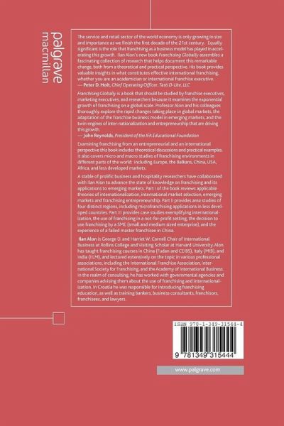 Franchising Globally is first of its kind to examine franchising both from an entrepreneurial and from an international perspective. The book includes theoretical discussions and practical examples of international franchising as well as both micro and macro studies of franchising environments in different parts of the world.