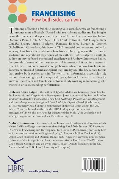 Shortlist: >Thinking of buying a franchise, creating your own franchise, or franchising a product more effectively? Packed with real-life case studies and key insights from the owners and operators of successful franchise systems--including Domino's Pizza, Dunkin' Donuts, Haagen Dazs, Café2U, Snappy Snaps, Ramada Encore, and Burger & Lobster--this book is the essential contemporary guide for aspiring franchisees or ambitious franchisors. It provides comprehensive advice on how to avoid potential traps, laying out the key success factors that enable both parties to win.