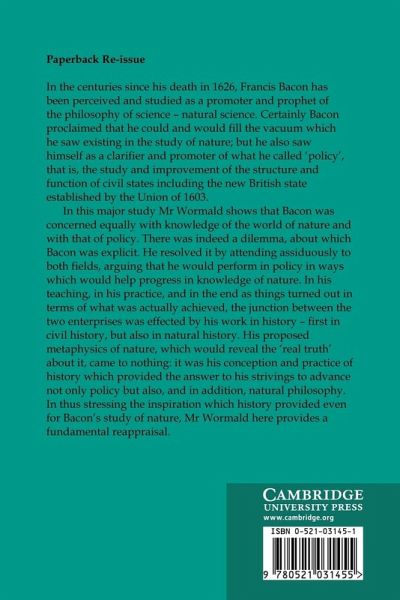 In the centuries since his death, Francis Bacon has been perceived as a promoter and prophet of 'natural science'. Certainly Bacon expected to fill the vacuum which he saw existing in the study of nature; but he also saw himself as a clarifier and promoter of what he called 'policy', that is, the study and improvement of the structure and function of civil states including the then new British state. In this major study, Brian Wormald's first since his work on Clarendon, Bacon is shown resolving this conflict by attending assiduously to both fields, arguing that work on one would help progress in the other. In his teaching, in his practice and in terms of what was actually achieved, the junction between the two enterprises was affected by Bacon's work in history - civil and natural. In this fundamental reappraisal of one of the most complex and innovative figures of the age, Brian Wormald reveals how Bacon's conception and practice of history provided an answer to his strivings in both policy and natural philosophy.