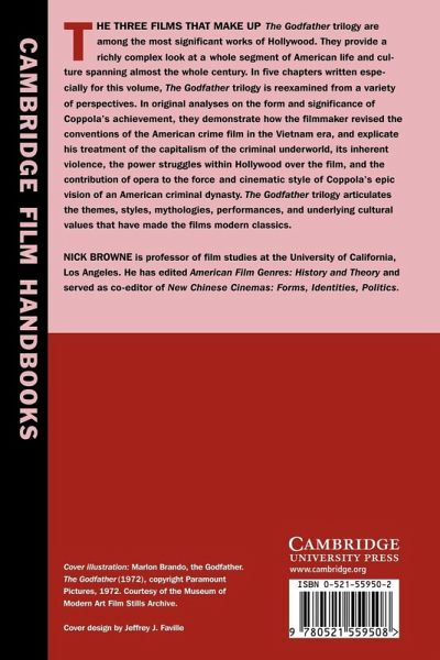 Among the most elaborate examples of crime film, the films in The Godfather trilogy provide a complex look at a whole segment of American life and culture spanning almost the whole century. In six essays, written especially for this volume, The Godfather trilogy is reexamined from a variety of perspectives.