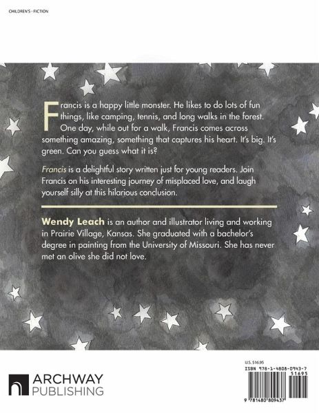 Francis is a happy little monster. He likes to do lots of fun things, like camping, tennis, and long walks in the forest. One day, while out for a walk, Francis comes across something amazing, something that captures his heart. It’s big. It’s green. Can you guess what it is? Francis is a delightful story written just for young readers. Join Francis on his interesting journey of misplaced love, and laugh yourself silly at this hilarious conclusion.
