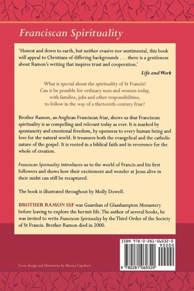 'Honest and down to earth, but neither evasive nor sentimental, this book will appeal to Christians of differing backgrounds . . . there is a gentleness about Ramon's writing that inspires trust and cooperation.' Life and Work. What is special about the spirituality of St Francis? Can it be possible for ordinary men and women today, with families, jobs and other responsibilities, to follow in the way of a thirteenth-century friar? Brother Ramon, an Anglican Franciscan friar, shows us that Franciscan spirituality is as compelling and relevant today as ever. It is marked by spontaneity and emotional freedom, by openness to every human being and love for nature. It treasures both the evangelical and the catholic nature of the gospel. It is rooted in a biblical faith and in reverence for the whole of creation. Franciscan Spirituality introduces us to the world of Francis and his first followers and shows how their excitement and wonder at Jesus alive in their midst can still be recaptured. The book is illustrated throughout by Molly Dowell.