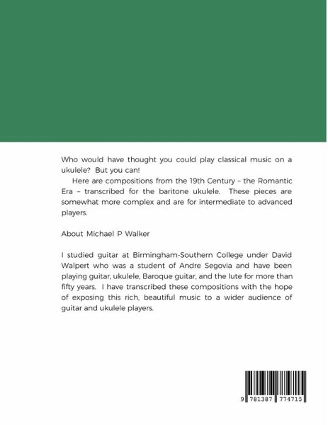 Who would have thought you could play classical music on a ukulele? But you can! Here are 19 compositions from the Romantic Era by Francisco Tarréga arranged for the Low G ukulele. These pieces are somewhat more complex and are for intermediate to advanced players.