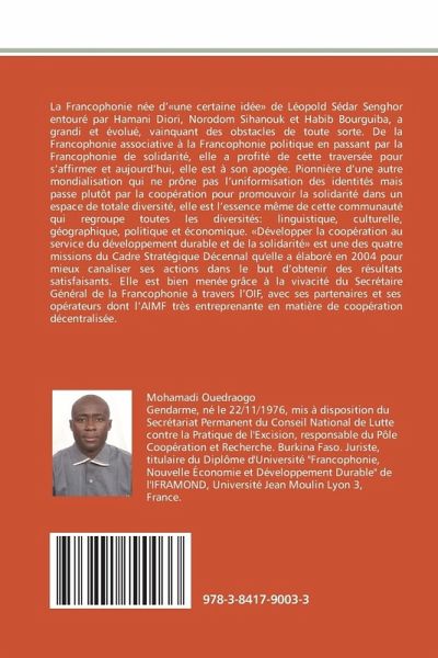 La Francophonie née d'«une certaine idée» de Léopold Sédar Senghor entouré par Hamani Diori, Norodom Sihanouk et Habib Bourguiba, a grandi et évolué, vainquant des obstacles de toute sorte. De la Francophonie associative à la Francophonie politique en passant par la Francophonie de solidarité, elle a profité de cette traversée pour s'affirmer et aujourd'hui, elle est à son apogée. Pionnière d'une autre mondialisation qui ne prône pas l'uniformisation des identités mais passe plutôt par la coopération pour promouvoir la solidarité dans un espace de totale diversité, elle est l'essence même de cette communauté qui regroupe toutes les diversités: linguistique, culturelle, géographique, politique et économique. «Développer la coopération au service du développement durable et de la solidarité» est une des quatre missions du Cadre Stratégique Décennal qu'elle a élaboré en 2004 pour mieux canaliser ses actions dans le but d'obtenir des résultats satisfaisants. Elle est bien menée grâce à la vivacité du Secrétaire Général de la Francophonie à travers l'OIF, avec ses partenaires et ses opérateurs dont l'AIMF très entreprenante en matière de coopération décentralisée.