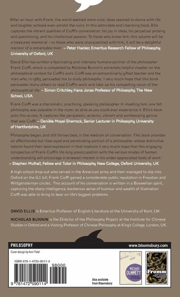 A high school drop-out who served in the American army and then managed to slip into Oxford on the G.I. bill, Frank Cioffi gained a considerable public reputation in Freudian and Wittgensteinian circles. Frank Cioffi: The Philosopher in Shirt-Sleeves is an account of his conversation written in a Boswellian spirit, capturing the sharp intelligence, boisterous sense of humour and wealth of illustration Cioffi was able to bring to bear on life's biggest problems when he was, as it were, off-duty. Tackling subjects such as the unruly body, the challenge of art, dealing with failure, the lure of science, the meaning of life, our understanding of others, depression, the case for suicide, and death, David Ellis describes how a philosopher who was profoundly influenced by Wittgenstein dealt with general issues and creates a vivid impression of an unusual and gifted individual. This portrait is followed by a post-script in which Nicholas Bunnin, who worked in the philosophy department at Essex when Cioffi was a professor there, situates him in a more strictly academic context and discusses his less well-known essays on literary criticism and the behavioural sciences, arguing for Cioffi's potential to inspire those seeking a role for analytic philosophy within the broader scope of humanistic philosophy. A mixture of personal portrait and academic introduction, Frank Cioffi: The Philosopher in Shirt-Sleeves provides an elegant and enjoyable tribute to Cioffi as both man and philosopher.
