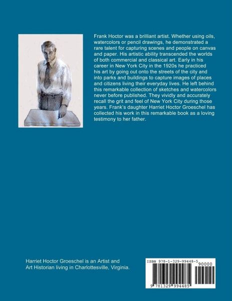 This is an original collection of pencil drawing and watercolors by artist Frank Hoctor. As a young artist in New York City in the 1920's he practiced his art by sketching people and places he observed, from the streets of New York to Central Park, Grand Central Station to the theater district. The book includes a brief glimpse of the life of the artist. The drawings were collected and edited by his daughter, artist and art historian Harriet Hoctor Groeschel.
