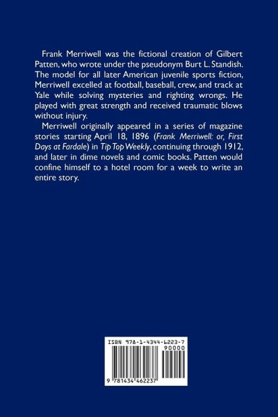 Frank Merriwell was the fictional creation of Gilbert Patten, who wrote under the pseudonym Burt L. Standish. The model for all later American juvenile sports fiction, Merriwell excelled at football, baseball, crew, and track at Yale while solving mysteries and righting wrongs. He played with great strength and received traumatic blows without injury. A biographical entry on Patten noted that Frank Merriwell "had little in common with his creator or his readers." Patten offered some background on his character: "The name was symbolic of the chief characteristics I desired my hero to have.…mehr