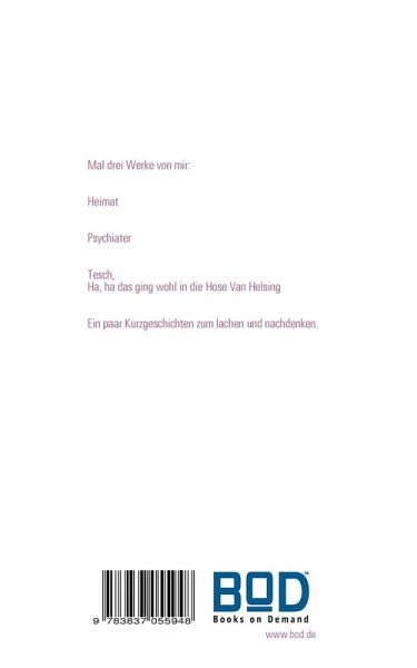 HeimatPsychiaterTesch,Ha, ha das ging wohl in die Hose Van HelsingMal ein paar Kurzgeschichten zum lachen und nachdenken.