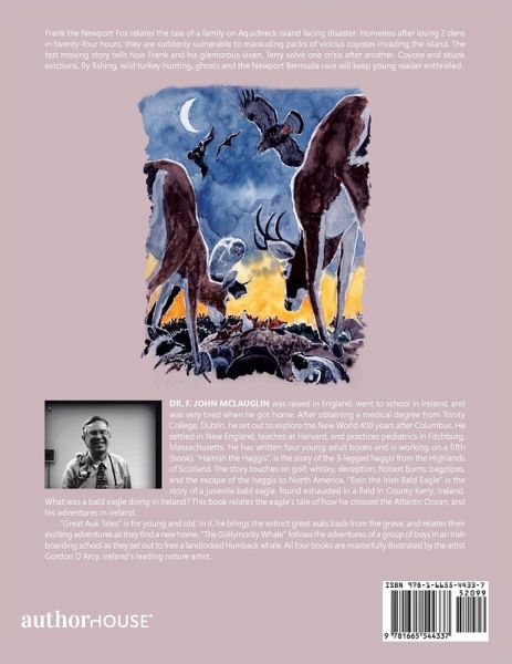 Frank the Newport Fox relates the tale of a family on Aquidneck Island facing disaster. Homeless after losing 2 dens in twenty-four hours, they are suddenly vulnerable to marauding packs of vicious coyotes invading the island. The fast moving story tells how Frank and his glamorous vixen, Terry solve one crisis after another. Coyote and skunk evictions, fly fishing, wild turkey hunting, ghosts and the Newport Bermuda race will keep young reader enthralled.