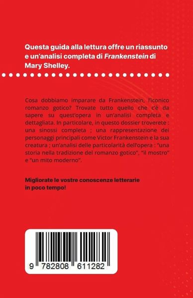 Cosa dobbiamo imparare da Frankenstein, l'iconico romanzo gotico? Trovate tutto quello che c'è da sapere su quest'opera in un'analisi completa e dettagliata. In particolare, in questo dossier troverete: - Una sinossi completa - Una rappresentazione dei personaggi principali come Victor Frankenstein e la sua creatura - Un'analisi delle particolarità dell'opera: una storia nella tradizione del romanzo gotico, il mostro e un mito moderno Un'analisi dei riferimenti per comprendere rapidamente il significato dell'opera.