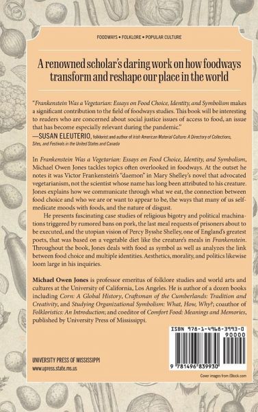 In Frankenstein Was a Vegetarian: Essays on Food Choice, Identity, and Symbolism, Michael Owen Jones tackles topics often overlooked in foodways. At the outset he notes it was Victor Frankenstein's "daemon" in Mary Shelley's novel that advocated vegetarianism, not the scientist whose name has long been attributed to his creature. Jones explains how we communicate through what we eat, the connection between food choice and who we are or want to appear to be, the ways that many of us self-medicate moods with foods, and the nature of disgust. He presents fascinating case studies of religious bigotry and political machinations triggered by rumored bans on pork, the last meal requests of prisoners about to be executed, and the Utopian vision of Percy Bysshe Shelley, one of England's greatest poets, that was based on a vegetable diet like the creature's meals in Frankenstein. Jones also scrutinizes how food is used and abused on the campaign trail, how gender issues arise when food meets politics, and how eating preferences reflect the personalities and values of politicians, one of whom was elected president and then impeached twice. Throughout the book, Jones deals with food as symbol as well as analyzes the link between food choice and multiple identities. Aesthetics, morality, and politics likewise loom large in his inquiries. In the final two chapters, Jones applies these concepts to overhauling penal policies and practices that make food part of the pains of imprisonment, and looks at transforming the counseling of diabetes patients, who number in the millions.
