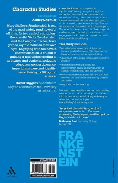 Mary Shelley's Frankenstein is one of the most widely read novels of all time. Its two central characters, the scientist Victor Frankenstein and the being he creates, have gained mythic status in their own right. Engaging with the novel's characterization is crucial to gaining a real understanding of its themes and contexts, including education, gender difference, imperialism, personal identity, revolutionary politics, and science. This study includes: an introductory overview of the novel, including a brief account of its historical and literary contexts; its reception history; discussion of the major themes and narrative structure; detailed analysis of, the representation of main characters, such as Walton, Frankenstein, and the creature; and a conclusion reminding students of the links between the characters and the key themes and issues.