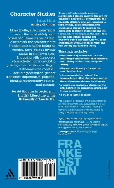 Mary Shelley's Frankenstein is one of the most widely read novels of all time. Its two central characters, the scientist Victor Frankenstein and the being he creates, have gained mythic status in their own right. Engaging with the novel's characterization is crucial to gaining a real understanding of its themes and contexts, including education, gender difference, imperialism, personal identity, revolutionary politics, and science. This study includes: an introductory overview of the novel, including a brief account of its historical and literary contexts; its reception history; discussion of the major themes and narrative structure; detailed analysis of, the representation of main characters, such as Walton, Frankenstein, and the creature; and a conclusion reminding students of the links between the characters and the key themes and issues.