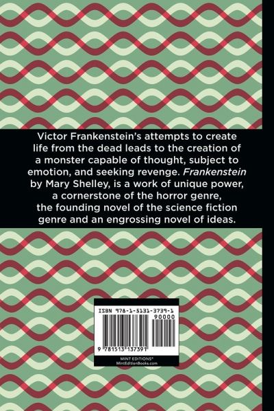 LARGE PRINT EDITION. Brilliant young scientist Victor Frankenstein's drive to create life leads him to animate a creature assembled from the bodies of the dead. Horrified at the result, Frankenstein flees. Alone, it learns of its ghastly nature and dreams of how it might find some kind of happiness. Seeking out Frankenstein, the creature offers a terrible ultimatum, create for it a companion or suffer its merciless revenge. Since its first publication in 1818 Frankenstein has become a literary classic and a celebrated fixture of pop culture. Filmed repeatedly and generating dozens of sequels both in print and on screen, Mary Shelley's novel still stands alone as a source of chilling thrills and macabre atmosphere while continuing to generate fresh insights and interpretations. Frankenstein, the man of science unprepared for what he has created, and his creation, a misbegotten innocent turned to the dark side by rejection and loneliness, are unforgettable characters with ageless appeal. Their conflict, and their strange bond, leads them from Germany to England and finally to a tragic climax far into the frozen North. With an eye-catching new cover, and professionally typeset manuscript, this edition of Frankenstein is both modern and readable. Since our inception in 2020, Mint Editions has kept sustainability and innovation at the forefront of our mission. Each and every Mint Edition title gets a fresh, professionally typeset manuscript and a dazzling new cover, all while maintaining the integrity of the original book. With thousands of titles in our collection, we aim to spotlight diverse public domain works to help them find modern audiences. Mint Editions celebrates a breadth of literary works, curated from both canonical and overlooked classics from writers around the globe.