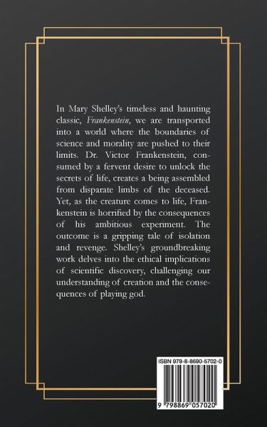 In Mary Shelley's timeless and haunting classic, Frankenstein, we are transported into a world where the boundaries of science and morality are pushed to their limits. Dr. Victor Frankenstein, consumed by a fervent desire to unlock the secrets of life, creates a being assembled from disparate limbs of the deceased. Yet, as the creature comes to life, Frankenstein is horrified by the consequences of his ambitious experiment. The outcome is a gripping tale of isolation and revenge. Shelley's groundbreaking work delves into the ethical implications of scientific discovery, challenging our understanding of creation and the consequences of playing god.