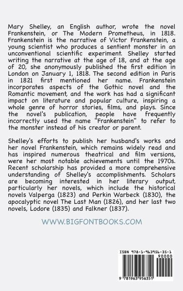 Mary Shelley, an English author, wrote the novel Frankenstein, or The Modern Prometheus, in 1818. Frankenstein is the narrative of Victor Frankenstein, a young scientist who produces a sentient monster in an unconventional scientific experiment. Shelley started writing the narrative at 18, and at 20, she anonymously published the first edition in London on January 1, 1818. The second edition, published in Paris in 1821, first mentioned her name. Frankenstein incorporates aspects of the Gothic novel and the Romantic movement, and the work has had a significant impact on literature and popular culture, inspiring a whole genre of horror stories, films, and plays. Since the novel's publication, people have frequently incorrectly used the name "Frankenstein" to refer to the monster instead of his creator or parent. Shelley's efforts to publish her husband's works and her novel Frankenstein, which remains widely read and has inspired numerous theatrical and film versions, were her most notable achievements until the 1970s. Recent scholarship has provided a more comprehensive understanding of Shelley's accomplishments. Scholars are becoming interested in her literary output, particularly her novels, which include the historical novels Valperga (1823) and Perkin Warbeck (1830), the apocalyptic novel The Last Man (1826), and her last two novels, Lodore (1835) and Falkner (1837).