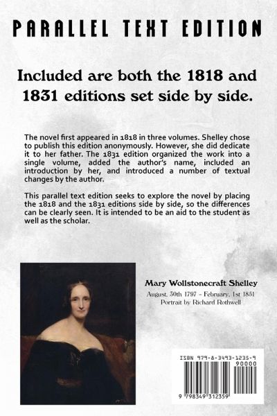 Two Editions in One Volume The enduring tale of Victor Frankenstein and his ill-fated creation, presented with the complete texts of the 1818 and 1831 editions in parallel. Frankenstein; or, The Modern Prometheus was authored by Mary Shelley (1797-1851), who began composing the novel at the age of eighteen. First published in 1818, the work was later revised by Shelley and republished in 1831 with numerous significant alterations. The narrative chronicles a gifted young scientist whose ambition compels him to bring a sentient being to life-only to recoil from his creation in horror. Spurned and forsaken, the creature grapples with his existence and, devoid of guidance, descends into vengeance. This side-by-side edition is designed to illuminate the textual differences between the original and revised versions, offering readers, students, and scholars a valuable resource for comparative study and deeper understanding of this seminal work.