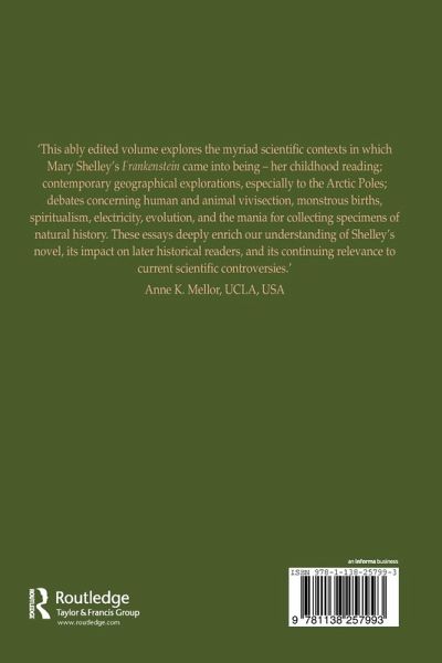 Frankenstein's Science contextualizes this widely taught novel in contemporary scientific and literary debates, providing new historical scholarship into areas of science and pseudo-science that generated fierce controversy in Mary Shelley's time: anatomy, electricity, medicine, teratology, Mesmerism, quackery, and proto-evolutionary biology. The collection will be an invaluable resource for students and scholars specializing in Romanticism, cultural history, and the history of science.
