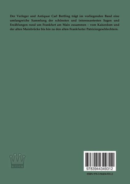 Der Verleger und Antiquar Carl Bertling trägt im vorliegenden Band eine umfangreiche Sammlung der schönsten und interessantesten Sagen und Erzählungen rund um Frankfurt am Main zusammen vom Kaiserdom und der alten Mainbrücke bis hin zu den alten Frankfurter Patriziergeschlechtern.