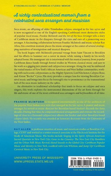 Soca music, an offspring of older Trinidadian calypso, emerged in the late 1970s and is now recognized as one of the English-speaking Caribbean's most distinctive styles of popular vocal music. Frankie McIntosh and the Art of the Soca Arranger tells a story of Caribbean music in the diaspora through the eyes and ears of a pioneering soca arranger. A fascinating collaboration between Frankie McIntosh and music scholar Ray Allen, this cowritten memoir places the music arranger at the center of several overlapping narratives of immigration and musical diaspora. The book begins with McIntosh's personal voyage from Saint Vincent to Brooklyn and his efforts to hammer out a career in music while raising a family in his newly adopted home. His immigrant tale is intertwined with his musical journey, from popular Caribbean dance bands through formal studies in Western classical music and jazz to his work as a gigging jazz pianist and calypso/soca arranger. Along the way he embraced the varied musics of New York's African American and West Indian communities, working with such iconic calypsonians as the Mighty Sparrow, Lord Kitchener, Calypso Rose, and Alston Becket Cyrus. His story provides a unique lens for viewing Brooklyn Carnival music and brings into focus the borough's rise to prominence as the transnational hub of the soca music industry in the 1980s. An alternative to traditional scholarship that tends to focus on calypso and soca singers, this work explores the instrumental dimensions of the art form through the life and music of one of the most celebrated soca arrangers and keyboardists of all time.